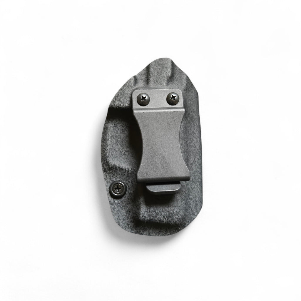 This is our "LP" Low Profile IWB (inside the waistband) Kydex holster. All of our holsters are handmade in the USA. All of our components are sourced from USA suppliers. Our holsters carry a lifetime warranty.